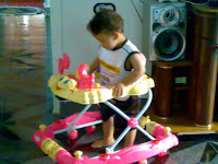وعندما بدا يمشي مسنود بعد العام كنت امسكة من الخلف واجعلة يركلها بقدمة ونهلل وعندما اتزن اصبح يشوطها بقدمة ويجري ورائها