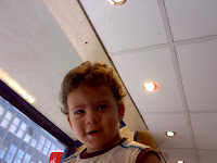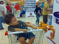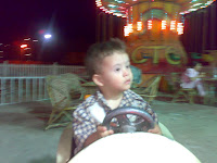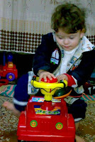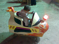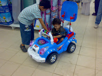 فهنا وهو بالمشاية وهو بيركب سيارة بلاستيكية صغيرة