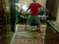واتم العام ونصف يقف ويمسكها بيدة ويرميها ويتابعها بقدمة