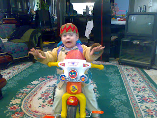 ومن لعبه معي تيتا جلس خلفها وصمم ان يدفعها من علي الكرسي بارجله وهي تعمدت الوقوع امامه ههههههههه